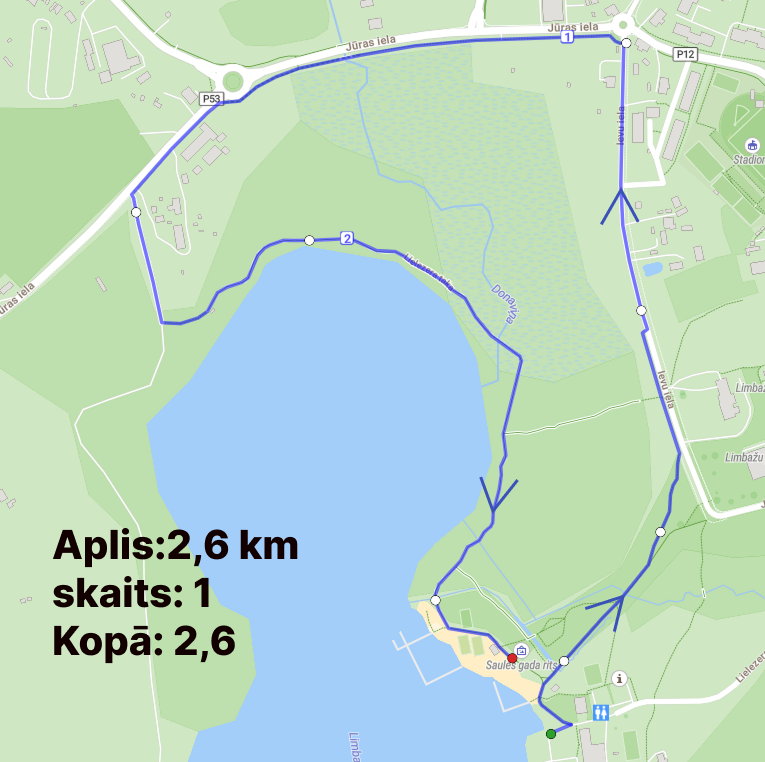 Skriešana notiks pa dabas taku un Ievu ielu (iela būs slēgta). Būs jāveic 1. aplis